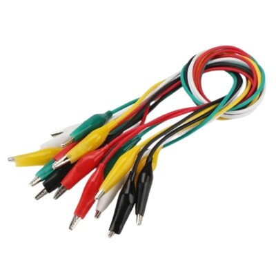 Farklı renklerde 55cm kablo uzunluğuna sahip krokodil kablolar.Proje ve deneylerde güç iletimi için idealdir.10\\\'lu krokodil kablo setidir.