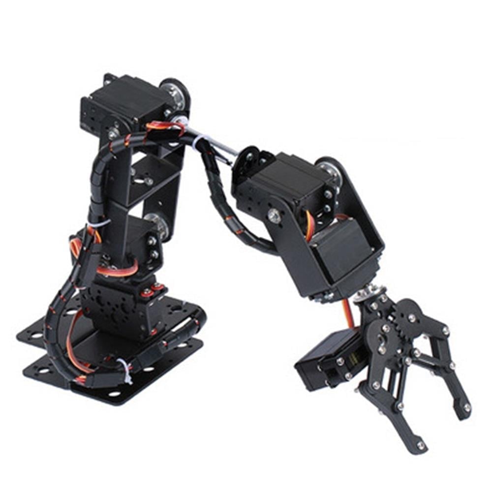 DOF Alüminyum Robot Kol Seti, 6 serbestlik derecesine sahip ve ucunda nesneleri kavrayabilmesi için bir kıskaç bulunan kolay kurulabilen ve kolay kullanımlı bir robot kol platformudur. Kol bağlantılarını kontrol eden servolar pakete dahildir. Robot kolu kullanmaya başlamak için tek yapmanız gereken 6, adet servo ile Arduino gibi bir mikrodenetleyici sistemi ile 6 adet servoyu PWM sinyalleri ile kontrol edecek bir program yazmaktır.
