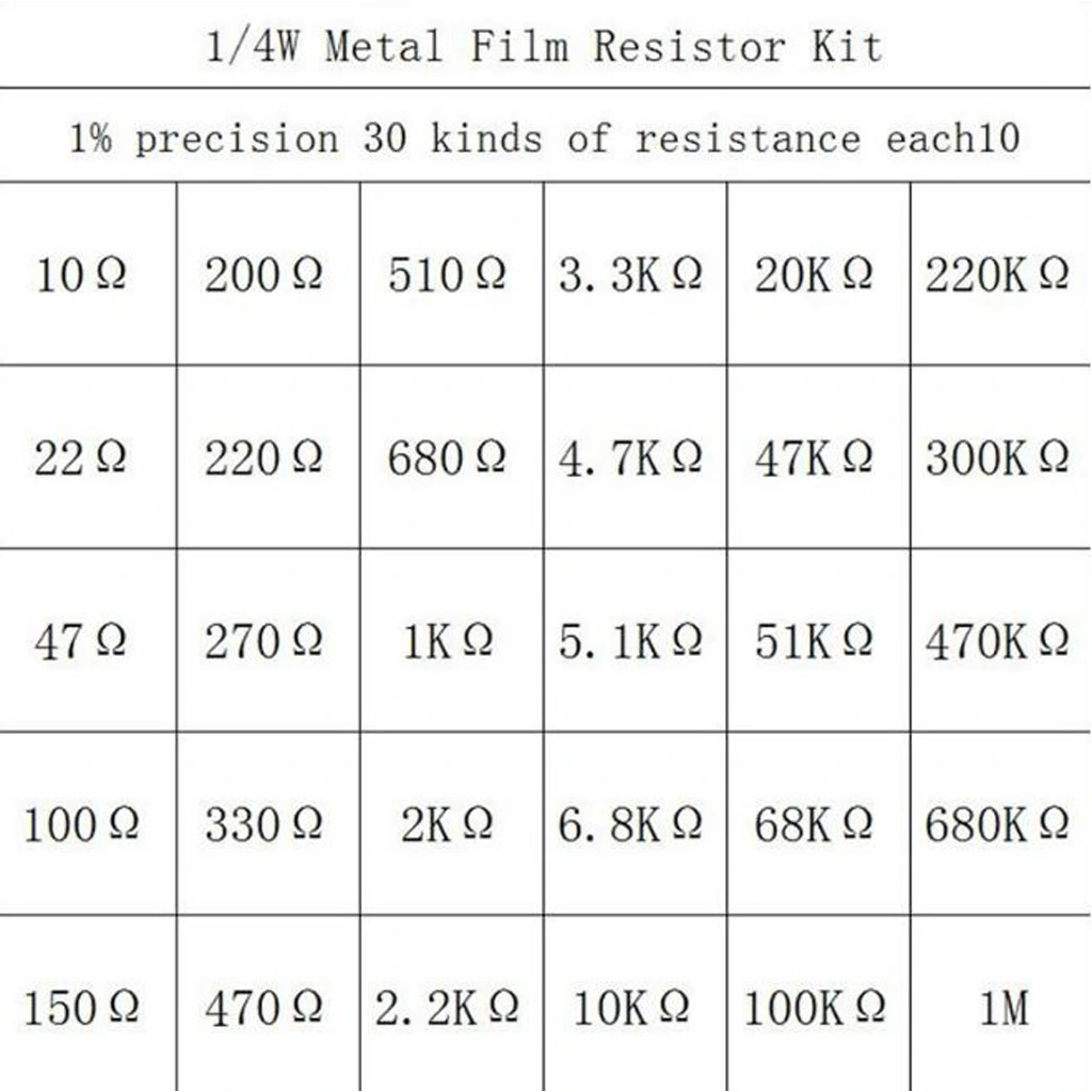 600 Parça 30 Çeşit Direnç Seti - 1/4W
