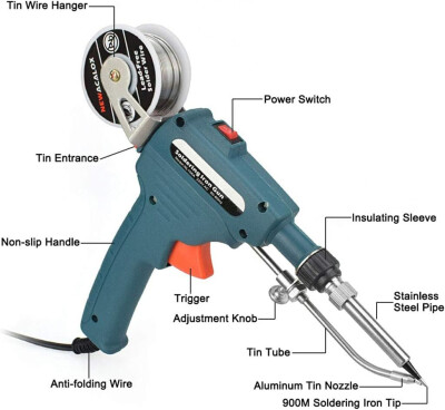 60W Düz Uçlu Tabanca Havya - Lehim Teli Beslemeli