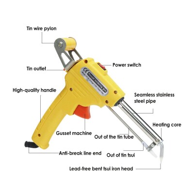 60W Eğik Uçlu Sarı Tabanca Havya - Lehim Teli Beslemeli