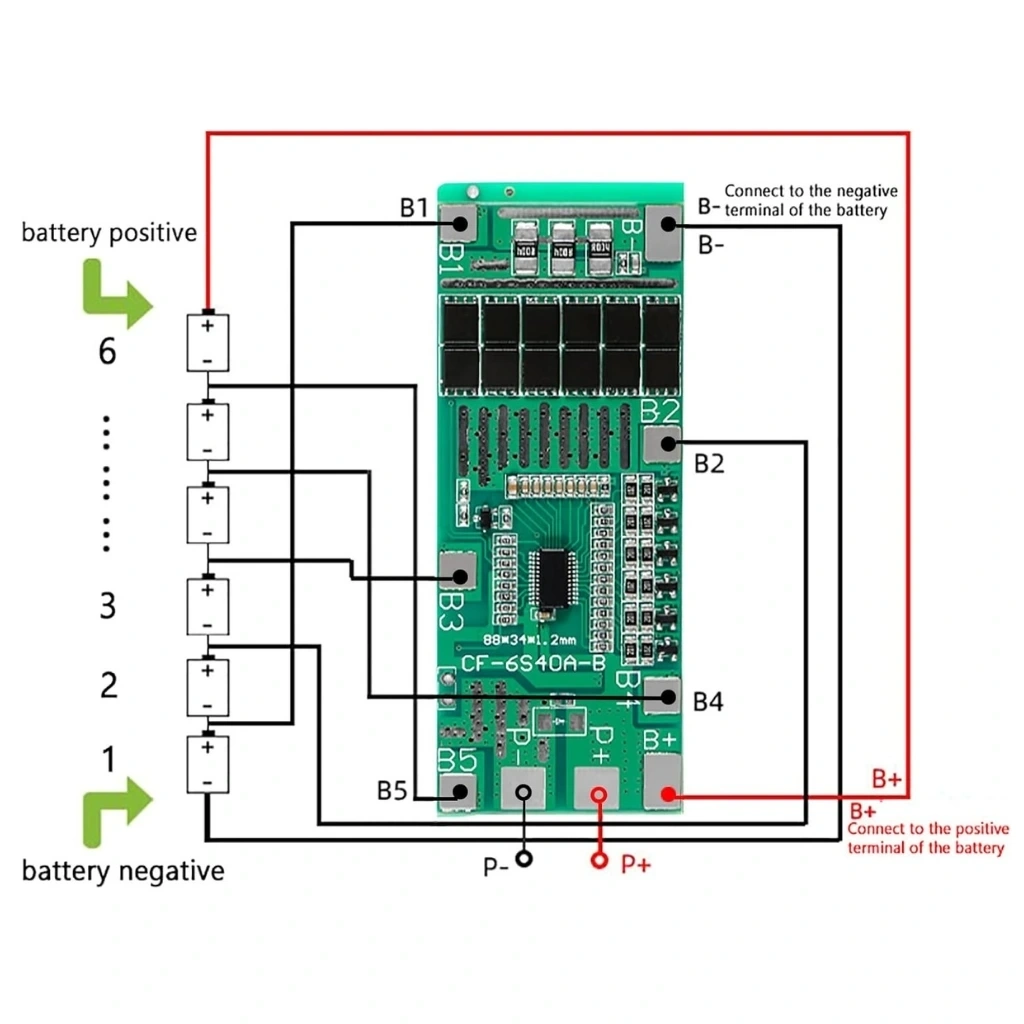 6S 40A BMS 24V 18650 Lityum Pil Şarj Koruma Devresi Balanslı