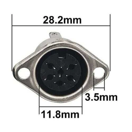 7 Pin Dişi DIN Konnektör - Flanşlı Panel Tipi 7 Pin Dişi DIN Konnektör - Flanşlı Panel Tipi.Elektronik müzik aletlerinde SYNC veya MIDI arabirimi olarak kullanabileceğiniz flanşlı panel tipi konnektördür. Özellikler Önerilen Giriş Voltajı: 12V DC / 100V AC Önerilen Giriş Amperi: 1A (100V) / 2A (12V) Çalışma Sıcaklık Aralığı: 5 ~ 70°C.
