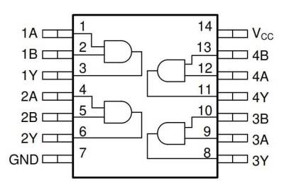 74HCT08N, kelepçe diyotları olan dörtlü 2 girişli bir AND Kapısıdır. Bu, girişleri VCC\\\'yi aşan Voltajlara bağlamak için akım sınırlama dirençlerinin kullanılmasını sağlar.