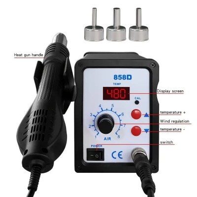 858D Sıcak Hava Lehimleme İstasyonu, mobil tamirciler ve PCB işleri gibi profesyonel uygulamalara uygun, kompakt, yüksek performanslı bir sıcak hava el aletidir. En küçük SMD bileşenlerinin yeniden akıtılması ve lehimlerinin sökülmesi için kullanılabilen bağımsız bir sıcak hava üfleyici olan 858D, sektördeki en iyi üfleyicidir. SET ve READ modlu mikrokontrolör tabanlı 7 segment ekrana sahiptir.