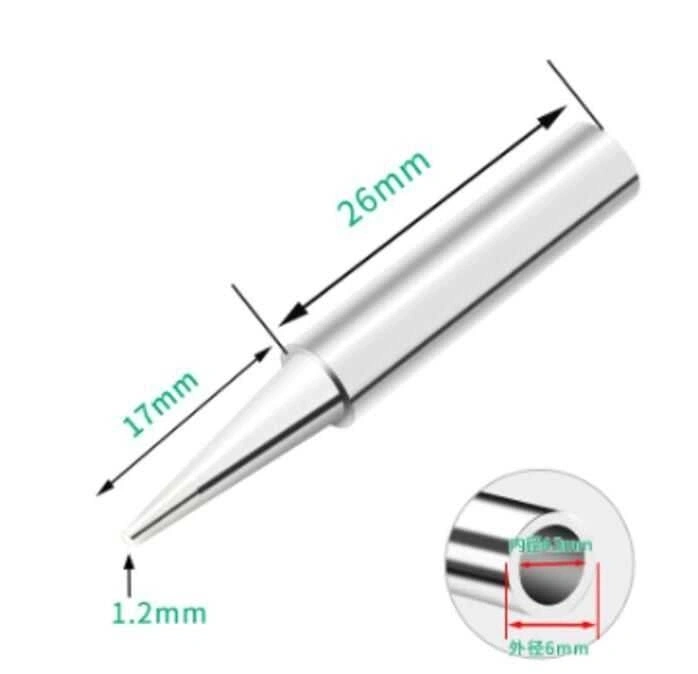 900M-T-B Havya Ucu - Silver Havya ucu ürünleri, mevcut havyanızın aşınan yada bozulan ucunu değiştirmenize olanak sağlayan bir ürün grubudur. Modellerine göre her havya ucunun farklı bir uç yapısı olabilir. Aşağıda yer alan tabloda çeşitli havya ucu çeşitlerinin uç yapısını görebilirsiniz. 900 Serisi Havya Uçlarının Uyumlu Olduğu Modeller: Bakon: BK701D, BK969S, SBK936b, SBK936D+, SBK8586 Aoyue Atten Class: 752,768,852D+,863,868D,909,940A,952C,938A,936A,962C Cyber: 852D Hakko Luckey Radio Shack 64-053 SOAIY Sunline: 936B,937D,852D+,852D+V2,853,852D,852D+992D+,990A,990B,899D+ Sywon Tiger T-Technic: 862, 936B, 937D UPX 852D+ V2 Vastar WELLER: ST7, WP25, WP30, WP35, WLC100 SP40L / SP40N serisi Wellhise 701A,WH-852,852D,WH-862D,872D+937A,937D,947D,999D+,898D++,898D+, Yihua 936B,937D,852D+,853,853AAA,852D,852D+992D+,1000A,1000B,899D+,899D Havya Ucu Modelleri Tablosu Aşağıdaki tablo havya uçlarının görünümleri hakkında fikir verme amaçlıdır. Gerçek boyutları ile aralarında milimetrik farklar olabilir..