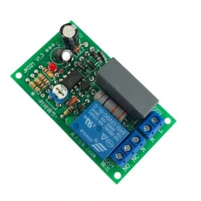 JK021 Gecikmeli zaman rölesi, AC 220v Voltajla çalışan bir zaman ayarlı röledir. Üzerinde yer alan potansiyometreden 0-200 saniye arası saniye ayarlanabilmektedir. N ve L uçlarından enerji geldiği andan itibaren röleyi açar ve belirlenen süre kadar açık tutar.