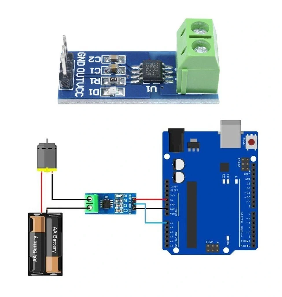 ACS712 sensörünü Arduino'ya bağlamak için aşağıdaki bağlantı şemasını izleyin: