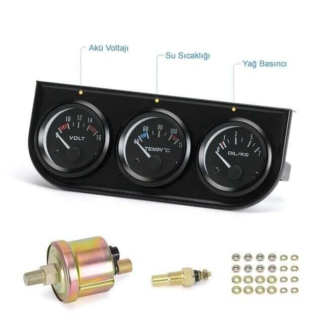 Akü Voltaj - Sıcaklık - Yağ Basıncı 3'lü Gösterge Paneli