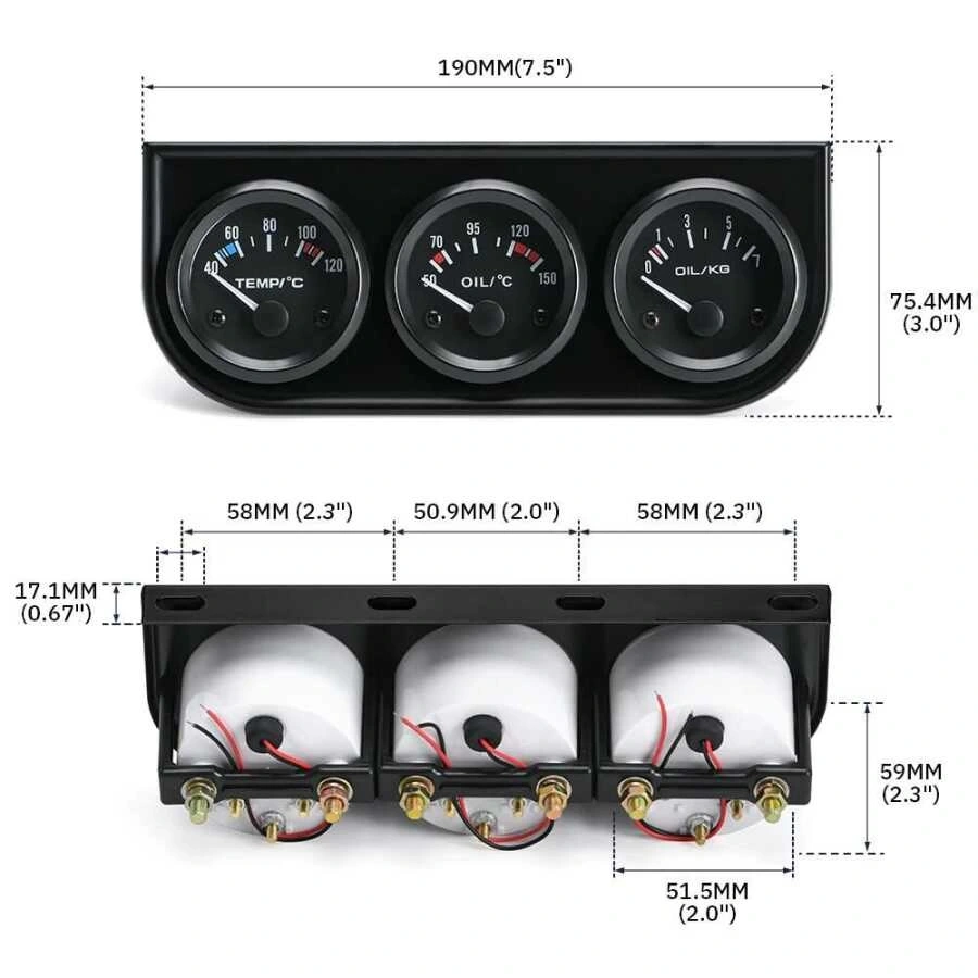 Akü Voltaj - Yağ Sıcaklığı - Yağ Basıncı 3\'lü Gösterge Paneli