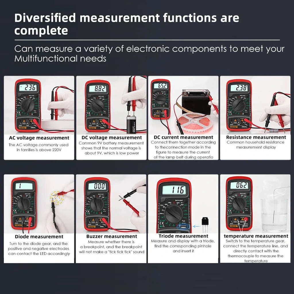 ANENG AN8205C Dijital Multimetre Kırmızı'nın kullanılabileceği çeşitli alanlar ve uygulama örnekleri.