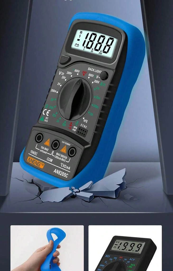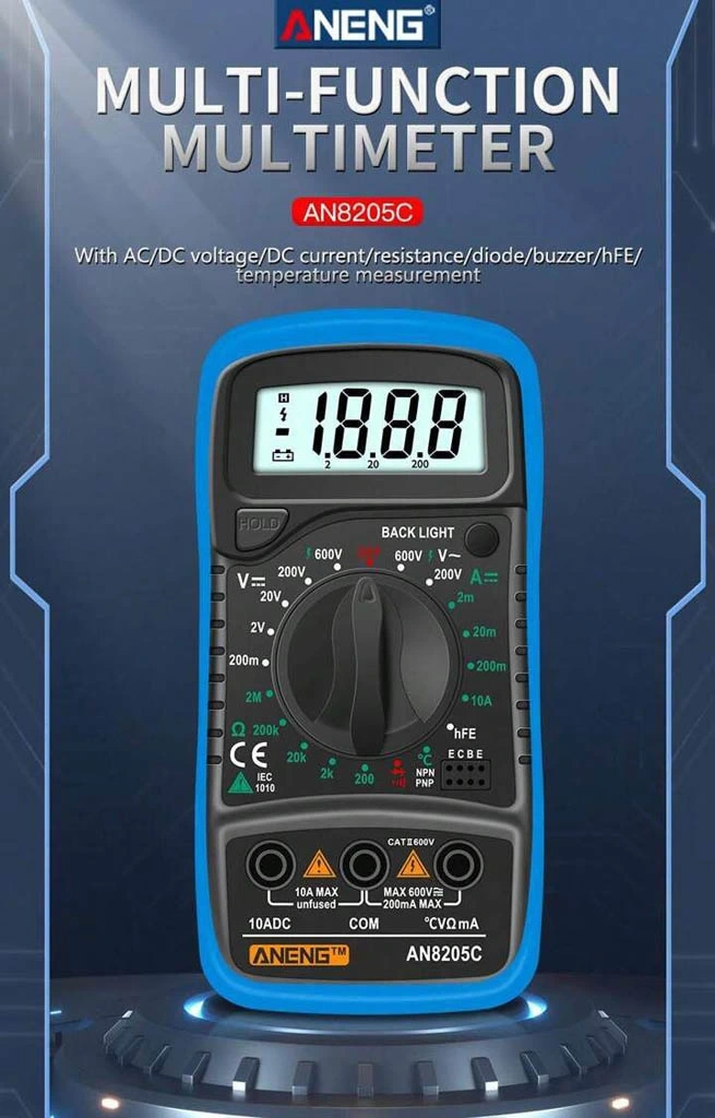 Ekonomik fiyatı ve güvenilir ölçüm performansıyla, temel elektronik ve elektrik işleriyle uğraşan herkes için uygun bir seçenek olan ANENG AN8205C, Mavi renkli tasarımıyla çalışma alanınızda da kolayca bulunabilir.