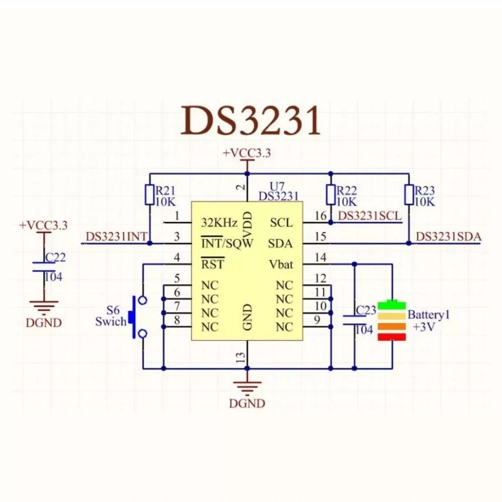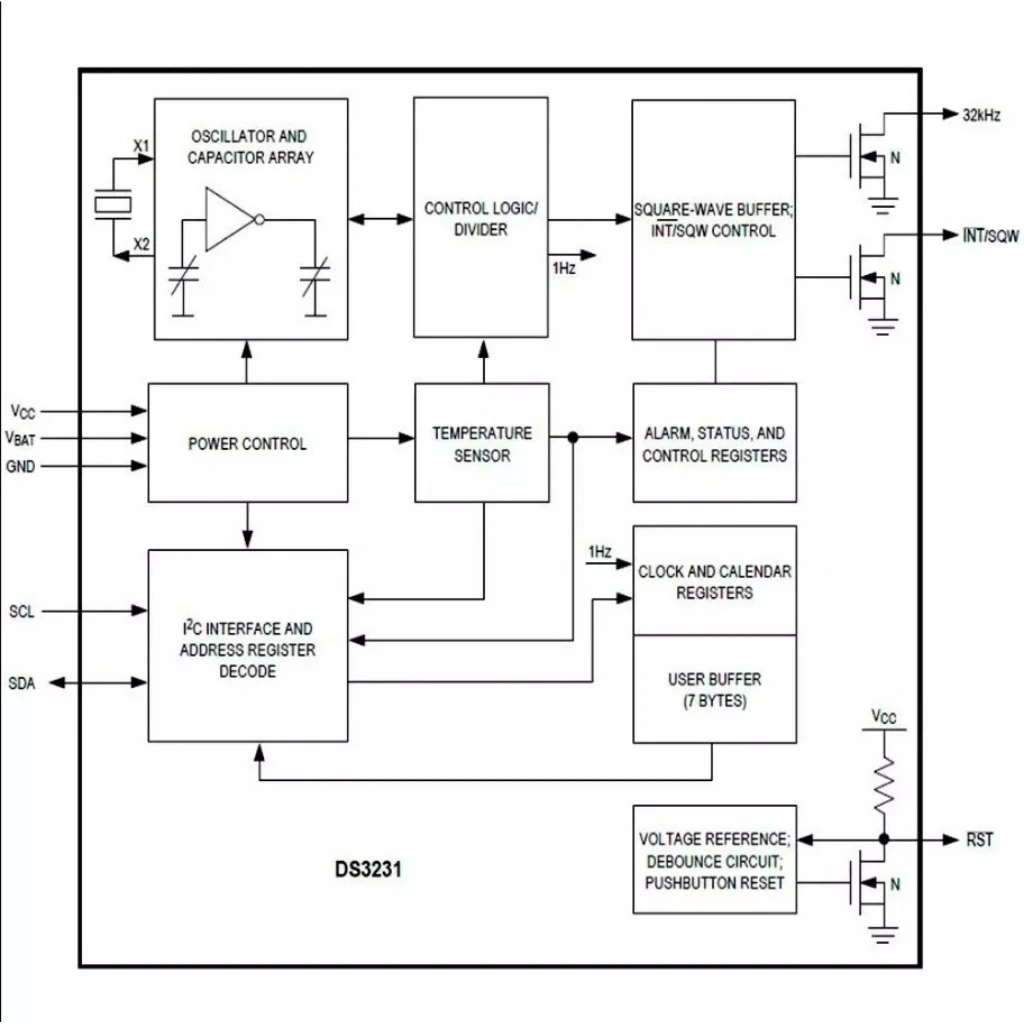 - RTC Entegresi: DS3231SN (Maxim Integrated / Analog Devices)