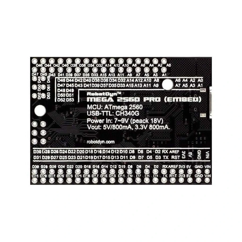 Arduino Mega2560 Pro Mini Geliştirme Kartı, ATmega2560 mikrodenetleyici ve USB-UART adaptörü CH340\'a dayanmaktadır. Kart Arduino Mega 2560 ile uyumludur. Pano 38x55mm\'lik kompakt bir form faktörüne sahiptir ve ATmega2560\'a dayalı projeler geliştirmek için mükemmel bir çözümdür. Mega Pro Embed işlevleri Arduino Mega 2560 ile aynıdır. Bir Embed kartı olmasına rağmen Mega Board gibi sağlamdır. Orijinal çipi kullanır ve kartta 16 MHz yüksek kaliteli kuvars rezonatörleri bulunur.