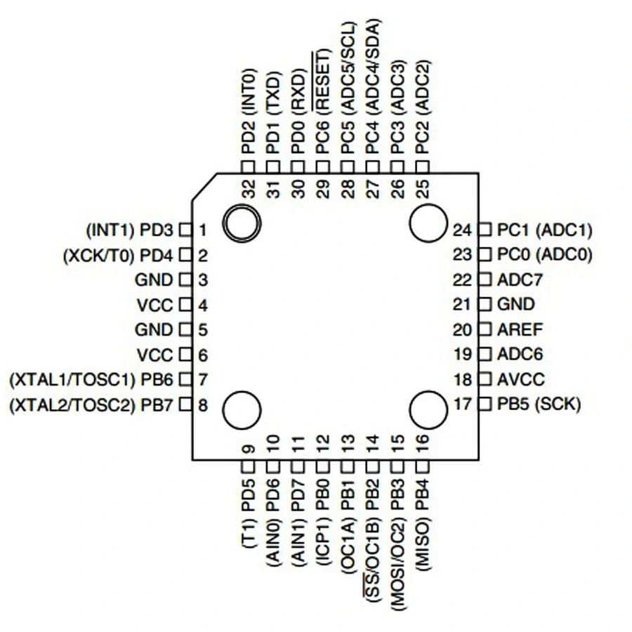 - AVCC/AREF: Analog güç ve referans voltajı pinleri