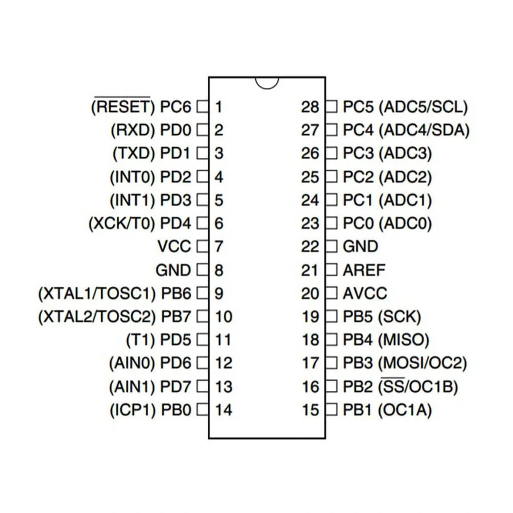 - Pin Grupları: B Portu (PB0-PB7), C Portu (PC0-PC6), D Portu (PD0-PD7)
