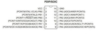Yüksek performanslı, düşük güçlü Microchip 8-bit AVR® RISC tabanlı mikrodenetleyici, 2 KB ISP Flash bellek, 128B EEPROM, 128B SRAM, 12 genel amaçlı G/Ç hattı, 32 genel amaçlı çalışma kaydı ve iki zamanlayıcı/sayıcıyı birleştirir (8-bit/16-bit), her biri iki PWM kanalı, dahili ve harici kesintiler, 8-kanal 10-bit A/D dönüştürücü, 12 diferansiyel ADC kanal çifti için programlanabilir kazanç aşaması (1x, 20x), programlanabilir watchdog zamanlayıcı dahili osilatör, dahili kalibre edilmiş osilatör ve yazılımla seçilebilir dört güç tasarrufu modu. Güçlü talimatları tek bir saat döngüsünde yürüten cihaz, güç tüketimini ve işlemci hızını dengeleyerek MHz başına bir MIPS'ye yaklaşan verim elde eder.