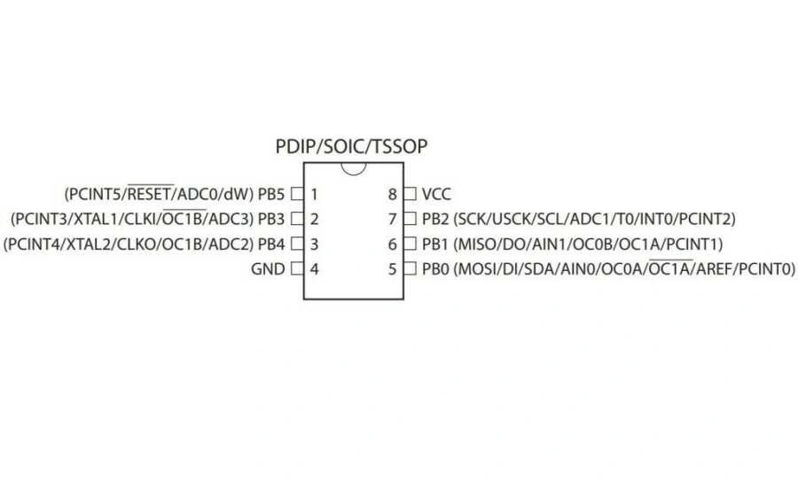 ATTINY85-20PU DIP-8 20MHz Mikrodenetleyici