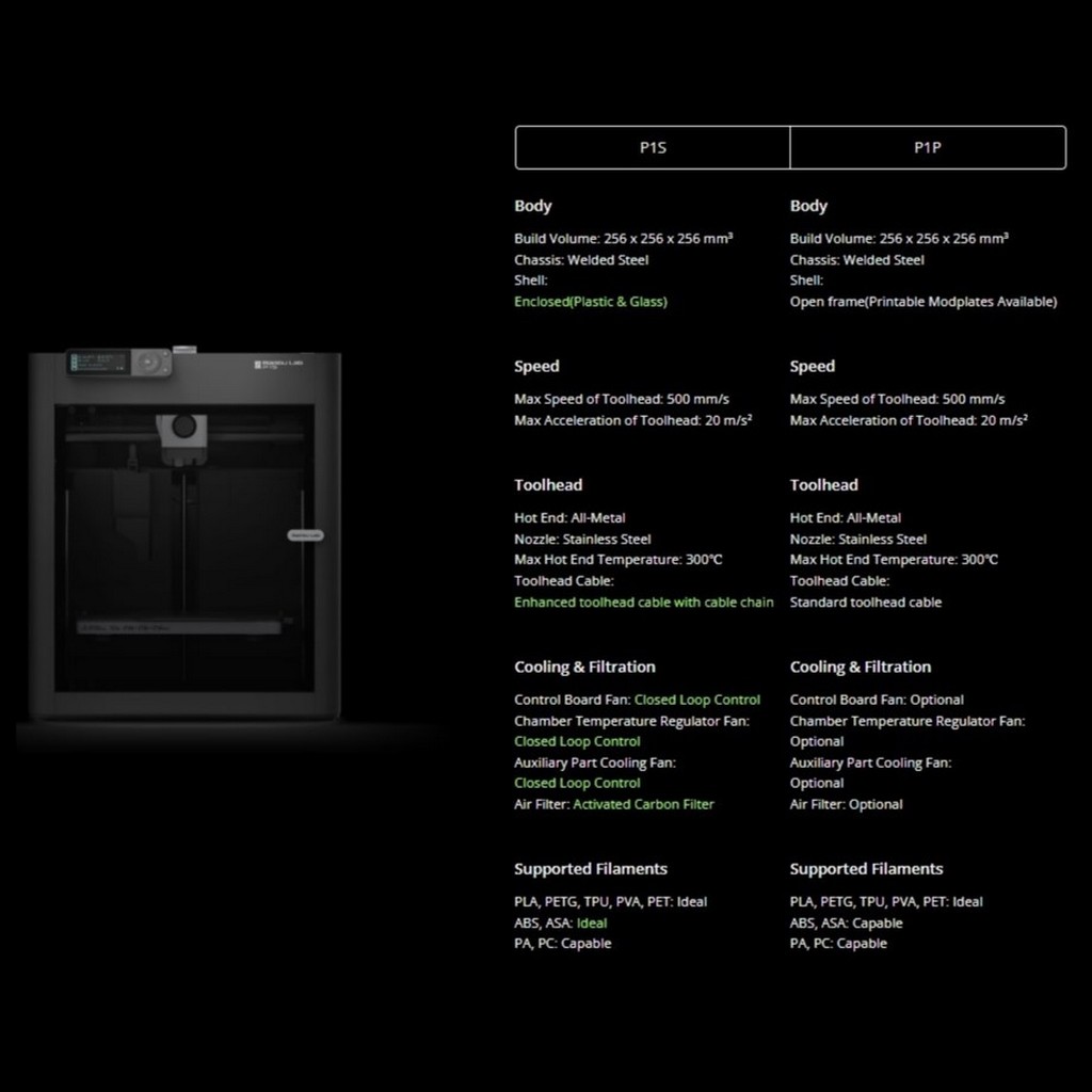 - Desteklenen Filamentler: İdeal : PLA, PETG, TPU, PVA, PET, ABS, ASA - Yetenekli : PA, PC