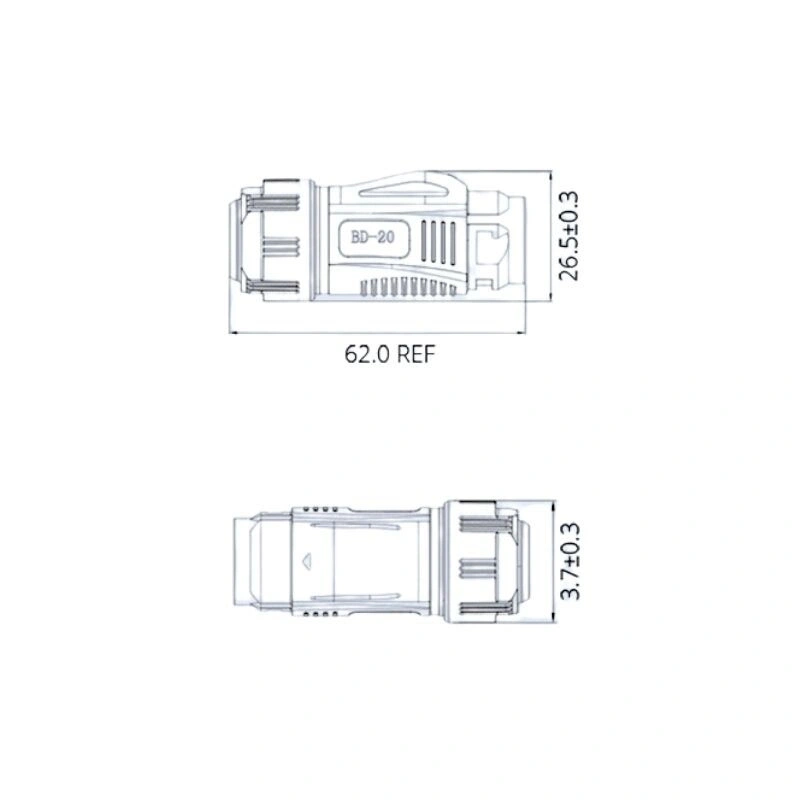 BD-20-C04PE-03-006A 4-Pin Su Geçirmez Konnektör - Erkek BD-20 serisi güç ve sinyal su geçirmez konnektörler, tek başına veya birlikte sabitlenerek farklı endüstrilerdeki ekipman bağlantılarına çözüm sağlamak için kullanılabilir. Görsel-işitsel ekipman, tıbbi ekipman, endüstriyel kontrol, test ve ölçüm ekipmanı, AV sistemi, yayın televizyonu ve iletişim, endüstri gibi kullanım alanları vardır. Panonun önüne ve arkasına takılan ekipmanların bağlantısı için uygundur. Yeni BD-20 (M20 tipi) serisi su geçirmez konektör, aerodinamik dinamik tasarımı, tek düğmeli cihaz ucuna basmayı ve hızlı takmayı benimser. BD-20-J04SX-03-406A 4-Pin Su Geçirmez Konnektör - Dişi ile uyumludur. CNLINKO ürünlerinde isteğinize bağlı kablolu üretim yapılabilir. Özel üretim toplu alımlar için geçerlidir. Özel istekleriniz için [email protected] ‘a mail atabilirsiniz. Teknik Özellikler Yüksek sıcaklık ve basınç direnci Bağlandığında IP65/67/68 sınıfı Pin Sayısı: 4 Pin Çapı - 2.7 mm Kablo Bağlantısı - 4mm2 / 12 AWG Anma Akımı - 20 Amper Çalışma Gerilimi - 500V AC Kontak Direnci -.