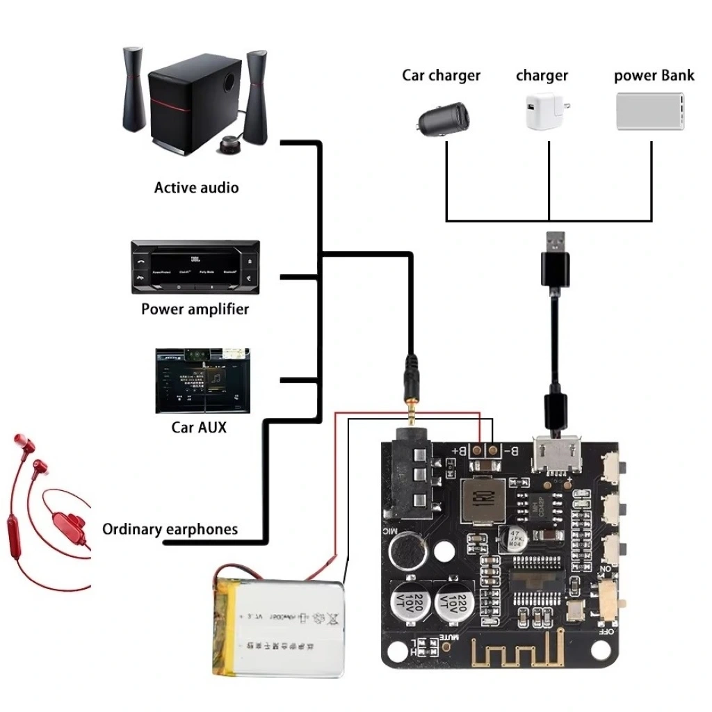 BT5.0 Pro Bluetooth Ses Alıcı Kartı Bluetooth 5.0 Mp3 Modülü Pro Mikrofonlu'nun kullanılabileceği çeşitli alanlar ve proje örnekleri.