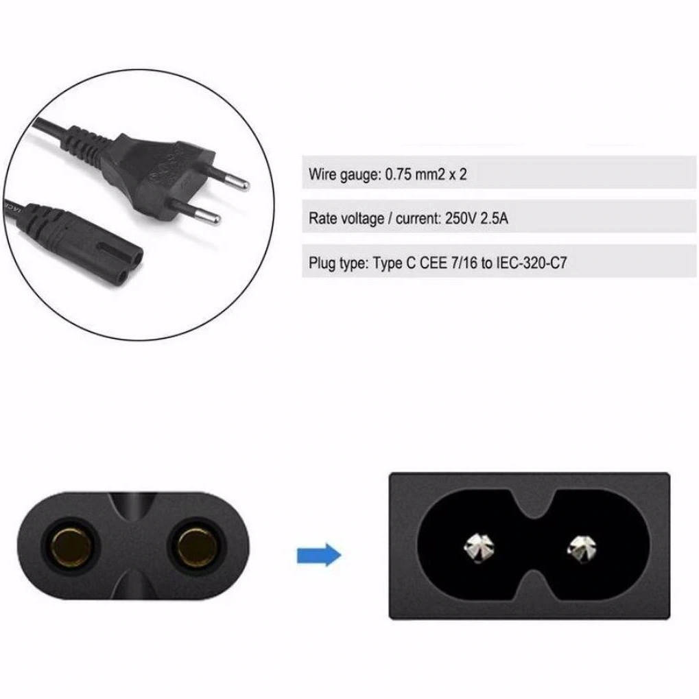 - Kablo Tipi: C7 2 Pin Güç Kablosu