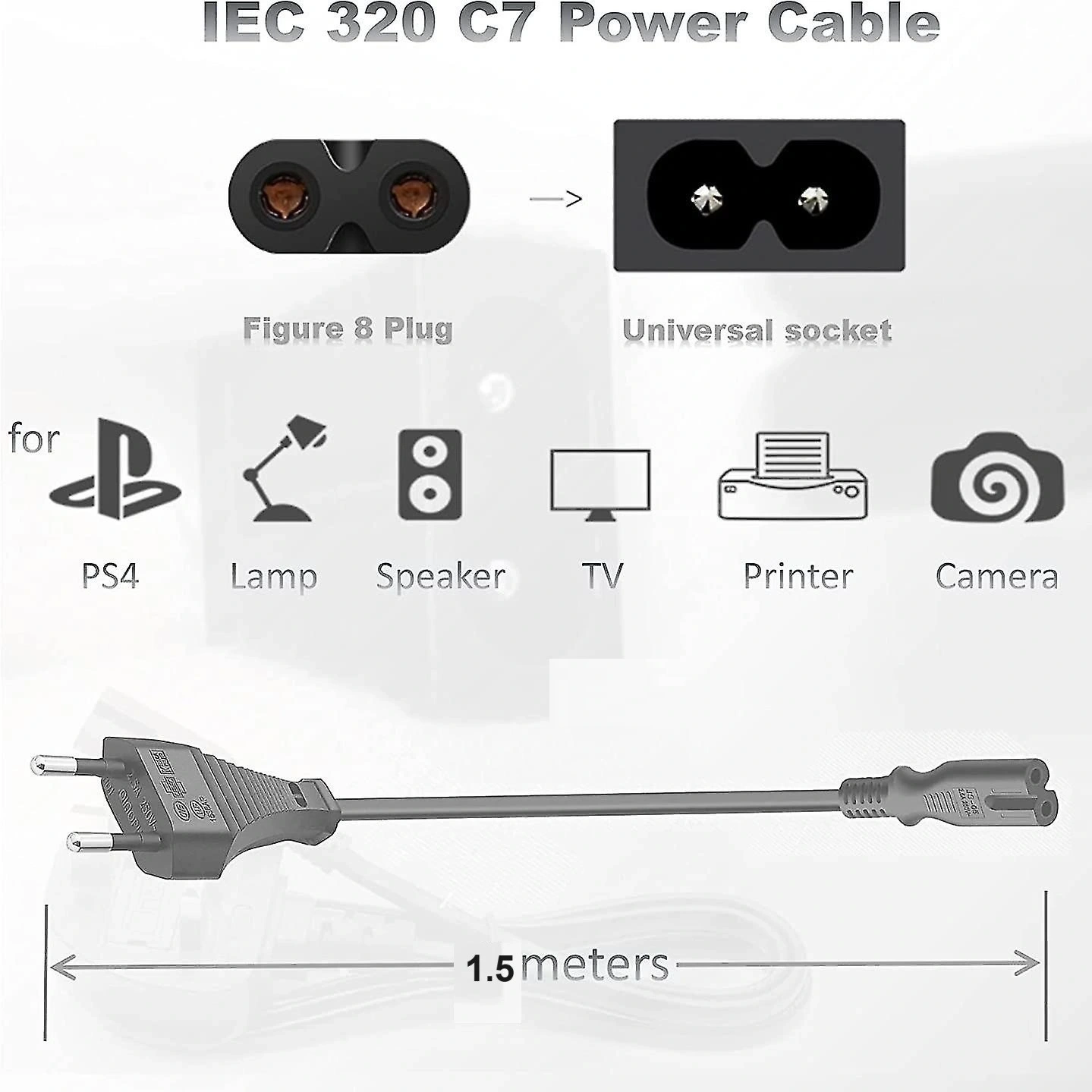 C7 2 Pin Teyp Yazıcı Power Fişi Güç Kablosu 1.5m'nin doğru kullanımı için bilgiler.