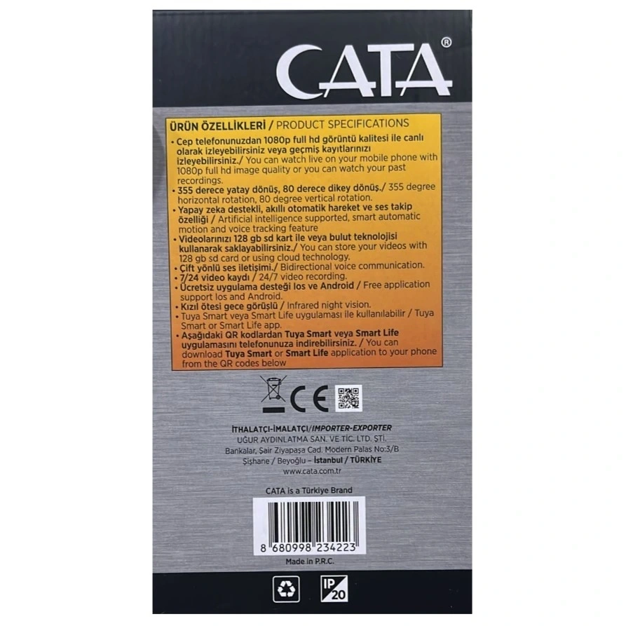CATA CT-4050 Gece Görüşlü Full HD 1080P 360° Akıllı IP Kamera'nın kurulum ve kullanım detayları.