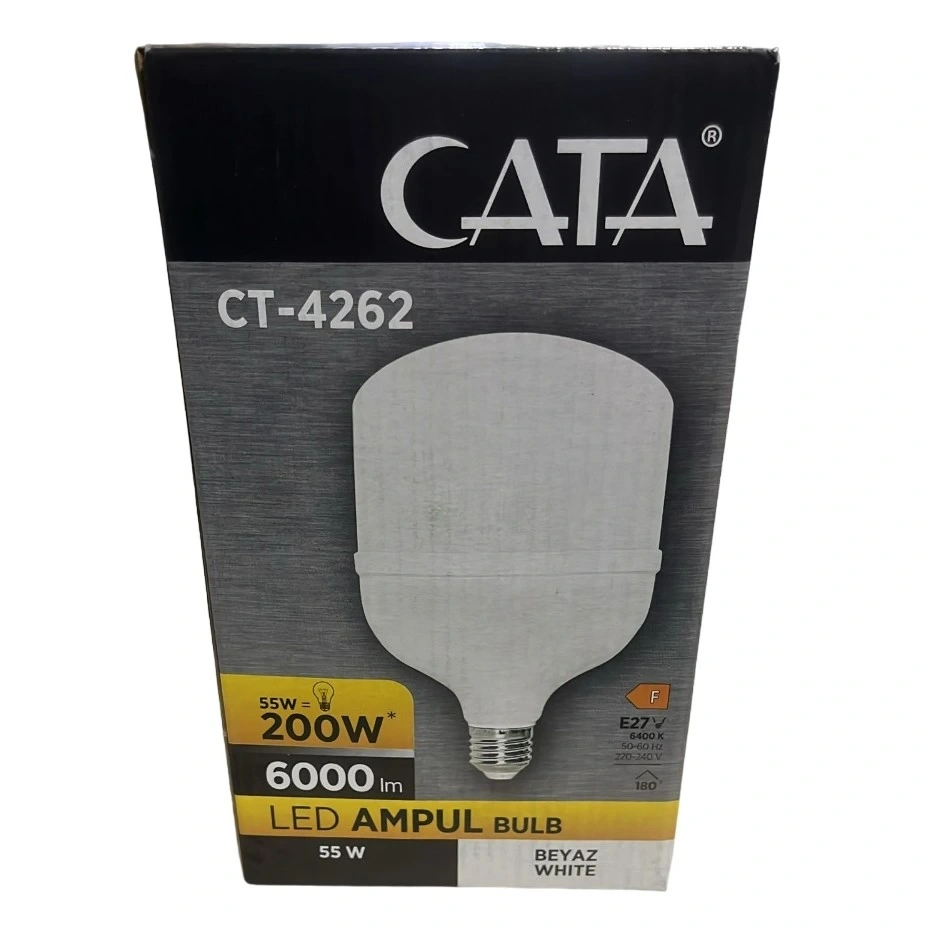 CATA CT-4262 LED Torch Ampul, 55W gücünde, E27 duylu, yüksek verimli bir aydınlatma çözümüdür. Meşale (Torch) şeklindeki tasarımı sayesinde geniş açılı ve homojen ışık dağılımı sunar.