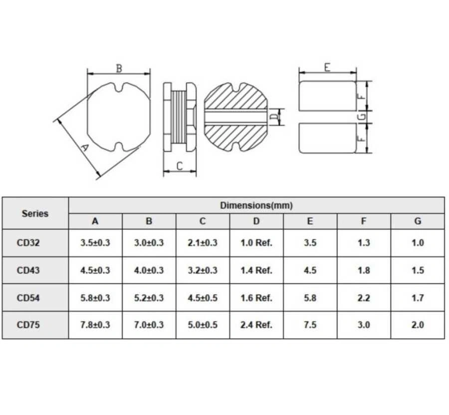 CD32 100UH SMD Bobin CD32 SMD Güç İndüktörü, yüzeye monte bir cihazdır. Üzerine telin sarıldığı çekirdek olarak bir ferrit tambura sahiptir. Bu indüktörün manyetik bir kalkanı vardır. Güç indüktörünün nem hassasiyeti seviyesi 1'dir, yani bu güç indüktörü yüksek nem direncine sahiptir. Bu tip indüktör, yüzeye montaj için pedlere sahiptir. Uygulamalar Alanları Cep telefonu, PDA, MP3, DSC/DVC, taşınabilir DVD Teknik Özellikler: Malzeme Çekirdeği: Ferrit Endüktans(µH): 100 Tolerans(%): 20 Mevcut Derecelendirme (A): 1 20°c'de DC Direnci (DCR)(mΩ): 140 Frekans (MHz): 2.52 Montaj: Yüzey Montajı. Çalışma Sıcaklığı (°c): -40 ~ 100.