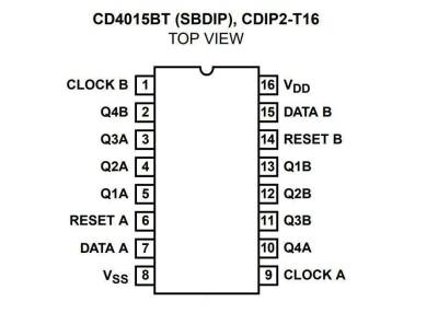 CD4015, Çift 4-bit Shift Kaydıdır. 18V\\\'a kadar geniş bir çalışma Voltajına sahiptir, bu nedenle yüksek Voltaj uygulamalarında kullanılabilir. IC, LED, LCD ekran vb.Gibi çoklu çıkışları kontrol etmek için mikrodenetleyici ile birlikte I / O genişletici olarak yaygın olarak kullanılır.