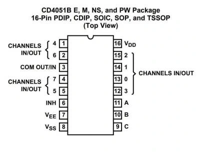 CD4051 analog çoklayıcılar ve demuliplexerler düşük ON empedansı ve çok düşük OFF kaçak akımına sahip dijital olarak kontrol edilen analog anahtarlardır. Bu çoklayıcı devreler, kontrol sinyallerinin mantık durumundan bağımsız olarak, tam VDD - VSS ve VDD - VEE besleme Voltajı aralıkları üzerinde son derece düşük durgun güç tüketir.