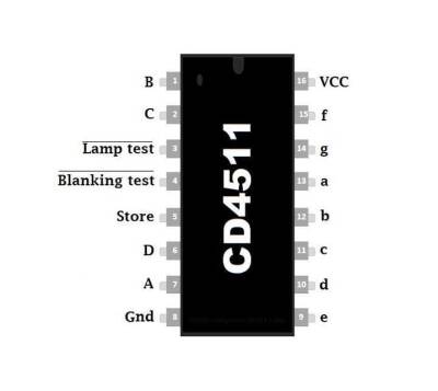 CD4511BC BCD-7-segment / kod çözücü / sürücü, tamamlayıcı MOS (CMOS) geliştirme modu cihazları ve NPN iki kutuplu çıkış sürücüleri ile tek bir monolitik yapıda üretilmiştir. 8421 BCD\\\'den yedi segmente dekoderin ve bir çıkış sürücüsü kapasitesinin işlevlerini sağlar. Lamba testi (LT), karartma (BI) ve mandal etkinleştirme (LE) girişleri, ekranı test etmek, ekranın parlaklığını kapatmak veya darbe modüle etmek ve sırasıyla bir BCD kodunu saklamak için kullanılır. Yedi bölümlü ışık yayan diyotlar (LED), akkor lamba, floresan, gaz deşarjı veya sıvı kristal okumalarla doğrudan veya dolaylı olarak kullanılabilir.