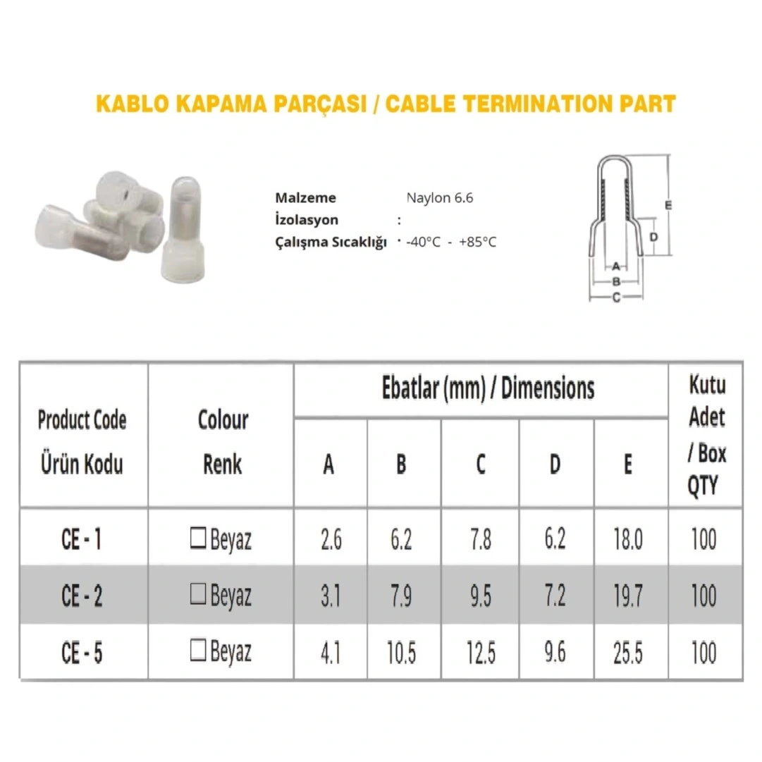 - Ürün Adı: CE-5 Kablo Ucu Kapama Terminali