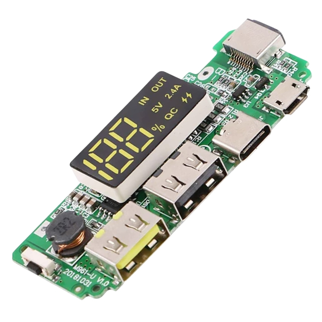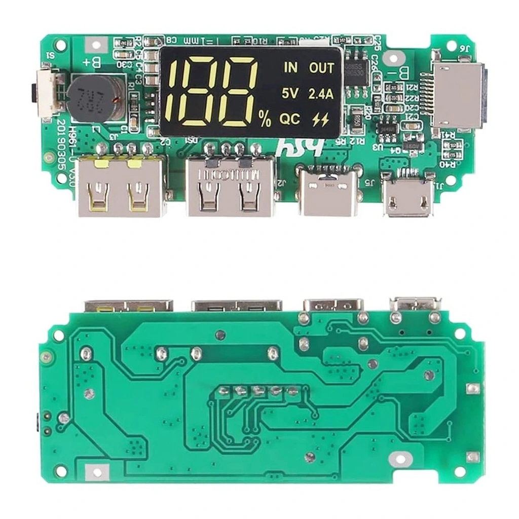 Çift USB 5V 2.4A Ledli Powerbank Modülü, lityum iyon (Li-ion) veya lityum polimer (LiPo) pillerle taşınabilir şarj cihazları (powerbank) yapmaya olanak tanıyan kompakt bir şarj ve güç çıkış devresidir. Hem micro USB hem de Type-C giriş seçenekleri sayesinde geniş uyumluluk sunar. Çift USB çıkışı ile aynı anda iki cihazı şarj edebilir ve entegre LED göstergeleri sayesinde pil şarj durumu ve kalan kapasite rahatlıkla izlenebilir.