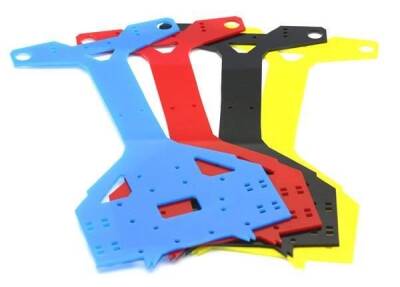 Çizgi izleyen yada hızlı çizgi izleyen robot projelerinizde kullanabileceğiniz gövde. Bu robot şasesinin üzerinde yer alan delikler Arduino Uno, QTR-8A ve 8RC\\\'nin montajı için uygundur.