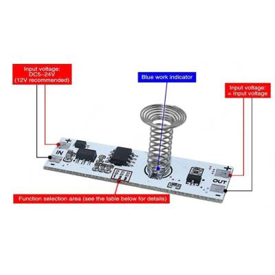 Dokunmatik arayüzü için tasarlanmış entegre bir devre modülü olan çok işlevli bir dokunmatik algılama modülüdür. Bu modül, LED ışıkların dokunmatik anahtar kontrolü ve parlaklık ayarı elde etmek için mekanik ışık dokunmatik düğmeleri değiştirmek için kullanılabilir. Modülün tasarım devresi, ortam sıcaklığından, nemden, yüzey kalıntılarından vb. kaynaklanan her türlü girişimin üstesinden otomatik olarak gelebilir ve direnç ve kapasitans hatalarından kaynaklanan önemli farklılıkları önleyebilir. Giriş Voltajı 5V\\\\'den düşük veya 24V\\\\'den yüksek olamaz, ideal kullanım 12V\\\\'tur.