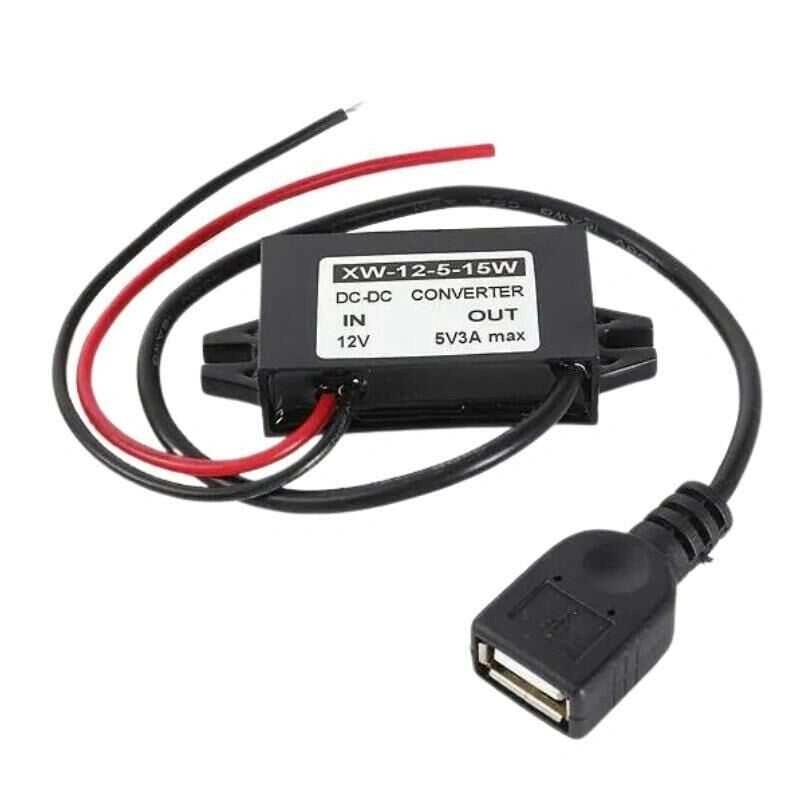DC-DC 12V'tan 5V'a 3A Voltaj Düşürücü - USB Çıkışlı XW-12-5-15W-USB DC-DC Converter, 12V DC giriş voltajını 5V 3A sabit DC çıkışa çeviren bir modüldür. İçerisindeki devreyi suya ve toza karşı koruyan kapalı kasası ile dış etkenlerden etkilenmeyen bir üründür. Teknik Özellikler: Giriş voltajı: DC 12V Çıkış voltajı: DC 5V Çıkış akımı: 3A Tam güç: 15W Anlık tepe akımı: maks. 5A Tam güç, yüksek dönüşüm oranı: > %90 Güç tüketimi: 20mA Giriş anında yüksek voltaj koruması Çıkış aşırı akım koruması Aşırı ısınmaya karşı koruma Giriş: kırmızı kablo: anot, siyah kablo: katot Çıkış: USB dişi USB Kablo uzunluğu: 30cm Giriş Kablo Uzunluğu: 13cm.
