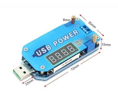 DC-DC 15W Voltaj Yükseltici ve Düşürücü Regülatör Modülü 7- segment ekranlı voltaj yükseltici ve düşürücü modüldür. Çıkış voltajını, çıkış akımını ve çıkış gücünü ekrandan görüntüleyebilirsiniz. Çıkış voltajı ve akımı üzerindeki potansiyometrelerle ayarlanabilir. Normal güç kaynağı modülü, şarj cihazı ve LED sabit akım sürücüsü olarak kullanılabilir. Buton/ Potansiyometre / LED tanıtımı: Uzun basma, 3 saniyeden daha uzun süre basılı tutulması gerektiği anlamına gelir. Sol Düğme: AÇMA / KAPAMA düğmesi. Kısa süreli basma, ekran modunda çıkış gerilimini AÇIK veya KAPALI konuma getirmek için veya kalibrasyon modunda 'Eksi -' olarak kullanmak veya hızlı şarj protokolü seçim modunda hızlı şarjı tetiklemek için kullanılır. Görüntüleme modunda bir sonraki yeniden güç için veya OFF Sağ Düğme: SELECT düğmesi. Ekran çıkış voltajını, çıkış akımını, çıkış gücünü değiştirmek veya ekran modunda sırayla bu parametreleri görüntülemek veya kalibrasyon modunda 'Artı +' olarak göstermek veya hızlı şarj protokolü seçim modunda hızlı şarjı başlatmak için basın. Kalibrasyon moduna girmek veya çıkmak için kullanılır. CV Potansiyometresi: Çıkış voltajını ayarlayın. Saat yönünde dönerken çıkış voltajını artırın. Çıkış voltajı ayarlanamıyorsa, CV potansiyometresini 10 saat yönünün tersine çevirin. CC Potansiyometre: Çıkış akımını ayarlayın. Saat yönünde dönerken çıkış akımını arttırın. Not: Sabit bir çıkış akımı tutmaz. Yük akımı, ayarlanan akım değerine ulaştığında, modül, bu akım değerini sabitlemeye başlar. Kısa devre çıkış terminali çıkış akımını ayarladığınızda. ON LED'i: Yeşil Çıkış göstergesi. Çıkış terminalinde bir çıkış olduğunda AÇIK hale gelir. Aksi halde KAPALI olur. CC LED: Kırmızı Sabit akım çıkış göstergesi. Yük akımı, ayarlanan akıma ulaştığında ve CC sabit akım göstergesi AÇIK olduğunda sabit akım durumuna girer. FC LED: Mavi Hızlı şarj göstergesi. Giriş terminali: Üç giriş yöntemi vardır: Yöntem 1: standart A tipi USB erkek. Sadece DC 5V giriş yapabilir. Yöntem 2: Mikro USB Dişi. Sadece DC 5V girebilir. Yöntem 3: IN+ ve IN- poerları üzerinden DC 4.0V-13.0V Sadece bir giriş yöntemi seçebilir. Çıkış terminali: 5.08mm mavi terminal. DC 0.5V-30.0V çıkış yapabilir. Teknik Özellikler Terminallerden giriş gerilimi: DC 4.0V-13.0V USB için giriş gerilimi: DC 5.0V Çıkış gerilimi: DC 0,5V - 30,0V Çıkış akımı: 2A Çıkış gücü: 15W (maks.) Gerilim göstergesinin doğruluğu: +/- 0.1V Voltaj göstergesinin çözünürlüğü: 0,1V Güncel ekran aralığı: 0 ~ 2,2A Güncel ekran doğruluğu: +/- 0.05Av Gerilim ekran çözünürlüğü: 0.001A Güç görüntüleme aralığı: 0 ~ 99.99 Ah Kapasite hassasiyeti: 0.00W ~ 15.0W Koruma sıcaklığı eşiği: 100 Dönüşüm verimliliği:% 95 Çalışma akımı: 30mA Çalışma sıcaklığı aralığı: -20 ℃ ~ 85 ℃ Çalışma nem aralığı:% 0 -% 95 RH Boyut: 84 * 35 * 24mm.