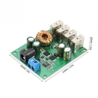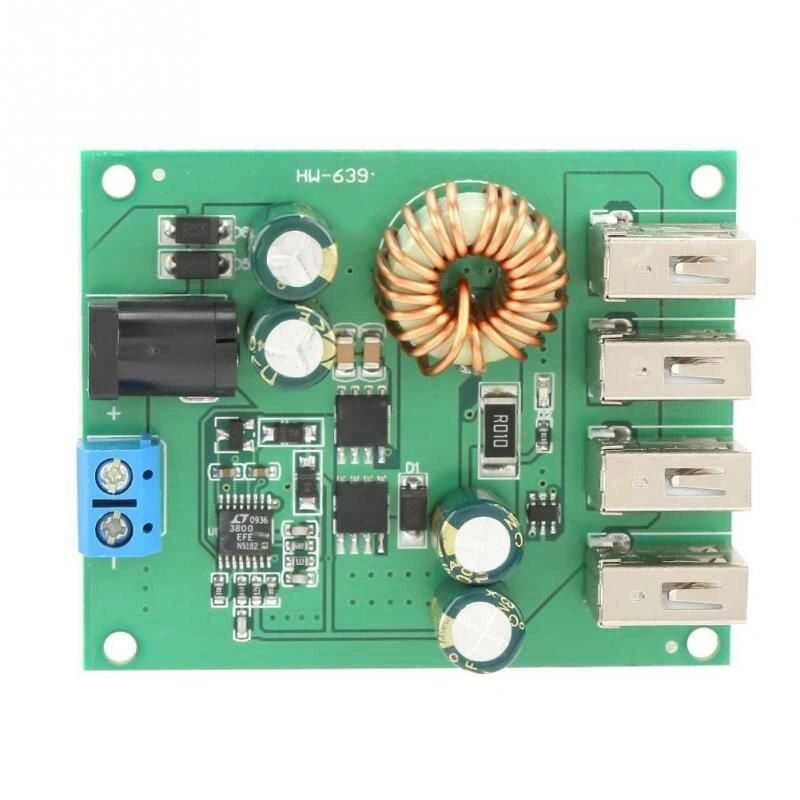 DC-DC 5V Sabit Çıkış Voltaj Düşürücü 8-36V Regülatör 5V voltaj çıkışlı çoklu şarj ünitesi. 8-36V arası dc voltaj girişini sabit 5v çıkışa dönüştürür. Ürün beslemesi üzerinden 5.5/2.1 adaptör yuvası ve klemens girişleri bulunmaktadır. Besleme kaynağınıza göre ikisinden birini kullanabilirsiniz. USB çıkış uçları toplamda maksimum 5V 5A (25 watt) çıkış verebilmektedir. Bir usb girişi en fazla 5v 3a çıkış verebilir. Eğer telefonunuzu şarj edecekseniz bu üründen telefonunuzun desteklediği kadar güç çıkışı alırsınız. Telefonunuzu hızlı şarj etmez, hızlı şarj protokollerini desteklemez. Örneğin telefonunuz 5v 2A'i destekliyorsa çıkış bu şekilde olacaktır. Teknik Özellikler: Giriş: 8V-36V Çıkış: 5V / 5A Verimlilik:% 93 (MAX) Çalışma Sıcaklığı: -40 ℃ ~ + 85 ℃ Koruma: Ters giriş koruması Yük kapasitesi: 5A Kablolama Yöntemi: DC5.5 / 2.1 adaptör girişi yada klemens terminal girişi Uygulama: Powerbank, cep telefonları, tabletler, veri kaydediciler ve diğer cihazlar USB 5V güç kaynağına ihtiyaç duyar Ağırlık: 36g / 1.3 oz (yaklaşık).