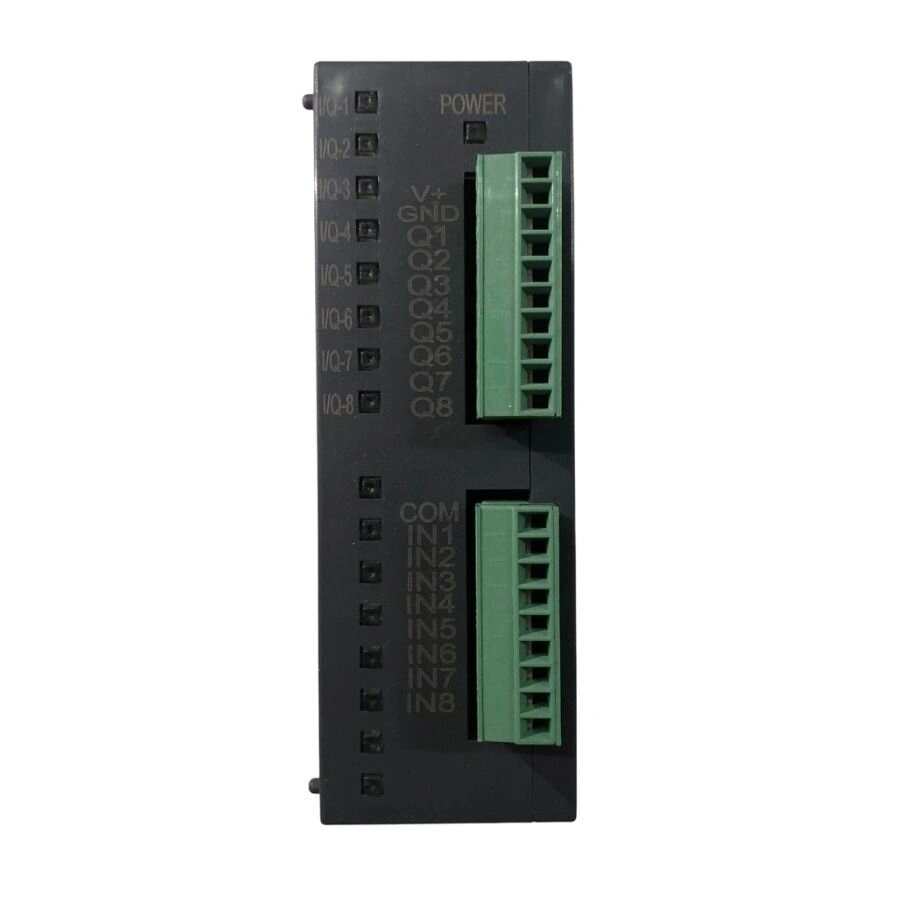 DELTECH I/Q-8 12-24V 4A Ray Tipi DC Motor Sürücüsü DELTECH I/Q-8 12-24V 4A Ray Tipi DC Motor Sürücüsü, mikroişlemci tabanlı sisteme sahip, hassas hız kontorlü ve harici yön kontrolü yapabileceğiniz DC motor sürücüsüdür. Anlık olarak yön dönüş kabiliyetine sahiptir. 4ms boyunca 40A peak akımına dayanım göstermektedir. Kullanıcı Kılavuzu Girişler Besleme COM Input Çıkışlar PNP Output Genel Özellikler PLC KONTROL SENSÖR VE ANALOG KONTROL PNP VE NPN GİRİŞ 1 KHZ PNP ÇIKIŞ Peak Akım 40A 4ms Mosfet Teknolojisi Mono blok soğutucu Input izolasyon 3700Vrms 20mA Slim ve kompakt Özellikler Besleme Gerilimi: 12-24VDC Sürekli Çıkış Akımı: 12V DC-- 8A / 24V DC --4A Çalışma Sıcaklığı: -55 °C + 110 °C Tepkime Süresi: 1ms Montaj Tipi: Pano Ray Tipi Boyut: 32x87x114mm (G*Y*D) Cihaz Ağırlığı: 150 gram GÜVENLİ KULLANIM TALİMATLARI • Cihaza elektrik altında bağlantı ve klemensden kablo sökme işlemi yapmayın. • Cihazı 3.Sayfada belirtildiği gibi kablo bağlantılarının doğru olduğundan emin olun. Farklı bağlantı sonuçlarından doğacak sorunlardan cihaz garanti kapsamından çıkacaktır. • Cihazı nemli koşullarda çalıştırmaktan sakınılmalıdır. • Cihazın hava akışı olacak ortamlarda kullanılması tercih edilmelidir. • Cihazın kullanılacak valf,Fren,motor doğrultusunda gerekli amperde güç kaynağı veya akü seçilmelidir. • Cihazı kullanımında gerekli amperde hızlı sigorta kullanılması tercih edilir. • Cihazı elektriksel gürültülerden uzak tutulup kablolamasına dikkat edilmelidir.