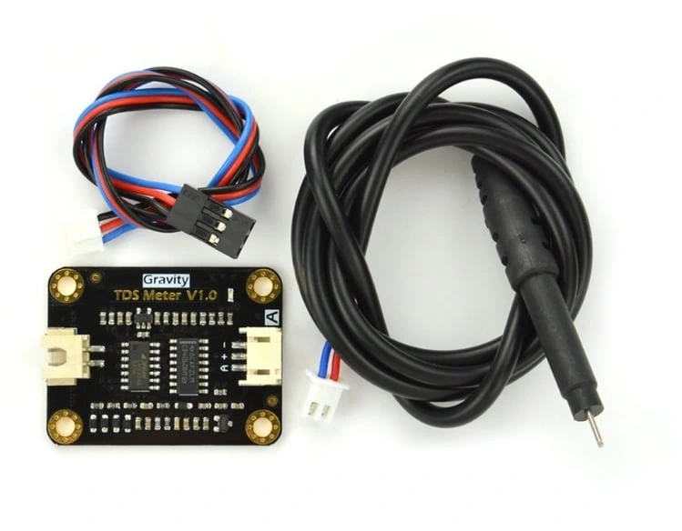 DFROBOT Gravity TDS (Total Dissolved Solids) ölçüm sensörü kiti, su içerisindeki çözünmüş katı madde miktarını ölçmek için tasarlanmıştır. TDS ölçümü; suyun kalitesini belirleme, arıtma sistemlerinin kontrolü ve çeşitli tarım uygulamaları için önemli bir göstergedir. Gravity serisinin kolay bağlantı özelliği sayesinde Arduino ve diğer mikrodenetleyicilerle rahatlıkla kullanılabilir.
