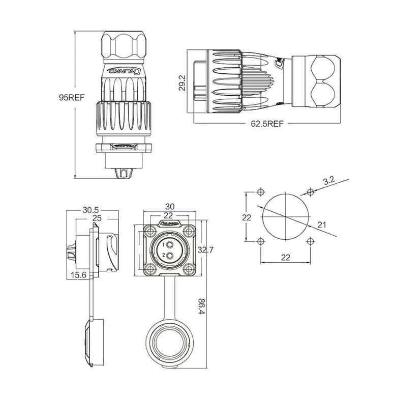 DH-20-C02PE-03-001 2-Pin Su Geçirmez Konnektör - Erkek DH-20 serisi su geçirmez konektörler, müşterinin talebini karşılamak için benzersiz dalga yayı tasarımı, standart kart yuvası, döner kilitleme tipi ve şık tasarım sunar. LED ekran, endüstriyel ekipmanlar, sahne aydınlatma ekipmanları ve diğer alanlarda yaygın olarak kullanılır. DH-20-J02SX-03-401 2-Pin Su Geçirmez Konnektör - Dişi ile birlikte kullanabilirsiniz. CNLINKO ürünlerinde isteğinize bağlı kablolu üretim yapılabilir. Özel üretim toplu alımlar için geçerlidir. Özel istekleriniz için [email protected] ‘a mail atabilirsiniz. Kullanım Alanları LED tri-proof aydınlatma/dış aydınlatma LED ekran Test ölçümü Endüstriyel kontrol sistemi Kontrol sistemi Güç ekipmanı Teknik Özellikler Alaşımlı harici koruyucu malzeme Askeri standartta üç noktalı spiral kilitleme Bağlandığında IP65/67 sınıfı Kablo özellikleri: 12-14 AWG Çap aralığı: Φ8mm~Φ12mm Kontak çapı × numarası: Φ2.7×2 Anma Akımı (A): 20A Çalışma gerilimi (AC.V.rms): 500V Kontak direnci:.