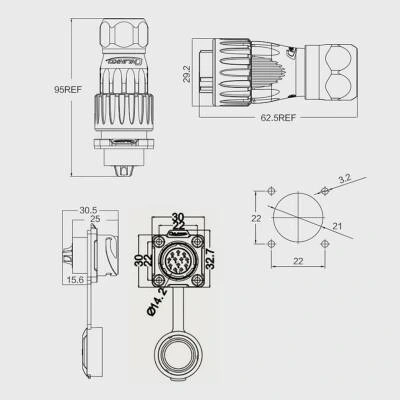 DH-20-C12PE-03-001 12-Pin Su Geçirmez Konnektör - Erkek