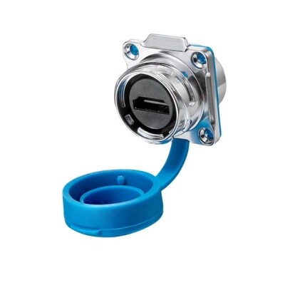 DH-24 HDMI yüksek performanslı HDMI konnektörü, güvenli sinyal ve veri iletimi için hızlı kilitleme özelliğine sahiptir. DH serisinde 24 numara plastik muhafazalı IP67 veri konnektörü. Altın kaplama kontaklara sahip siyah plastik yapı, uzun bir kullanım ömrü sağlar. HDMI konnektörü, IP67 koruma sınıfına uygun olarak su ve toz geçirmezdir. Metal kilit, güvenli bir bağlantı sağlar ve veri ve güç kesintilerine karşı koruma sağlar. Veri konnektörü için maksimum nominal güç 0,5 amperdir. Fişte hızlı fiş bağlantısı vardır. Hızlı konnektör tasarımı, tek elle takılıp çıkarılmasını sağlar.