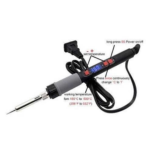 Bu kompakt tasarımlı havya profesyonel kullanım için idealdir. 80W\\\'lık seramik ısıtma elemanı ile hızlı bir şekilde ısınır ve dijital ekran, sayısal sıcaklık ayarlarını gösterir. Dijital kodlayıcı düğmeleri aracılığıyla sıcaklığı 180~500°C arasında hassas bir şekilde ayarlayabilir ve yerleşik güç anahtarını kullanarak havyayı AÇIK veya KAPALI konuma getirebilirsiniz. 80W gücündeki bu havya yardımıyla devrelerinizi kolayca ve sorunsuz bir şekilde lehimleyebilirsiniz.