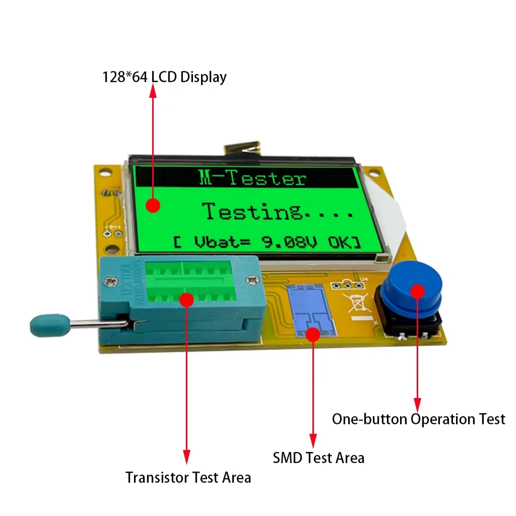LCR-T4 Dijital Test Cihazı, elektronik komponentlerin doğru şekilde test edilmesi için ideal bir araçtır. Transistörler, kondansatörler, dirençler, diyotlar ve bataryalar gibi temel elektronik bileşenleri ölçer ve analiz eder. Grafiksel ekranda bileşenlerin özelliklerini göstererek kolay anlaşılabilir sonuçlar sunar. Kompakt ve taşınabilir tasarımı sayesinde, hem hobi meraklıları hem de profesyonel mühendisler için mükemmel bir test cihazıdır. Ayrıca, batarya testi ve şarj tutma kapasitesi ölçümleri yaparak güç kaynağı değerlendirmeleri için de kullanılır.