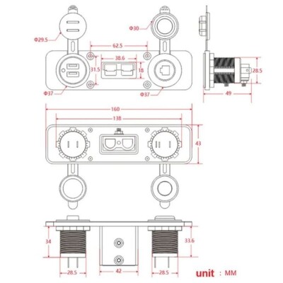 Dişi Araç Çakmaklık ve 2x5V USB Paneli - Anderson Power Soketli, Genellikle otomotiv sektöründe, araçlarda, teknelerde ve karavanlarda tercih edilen bir üründür. Panel üzerinde dişi araç çakmaklık, anderson akü konnektörü ve 2x USB ( 5V 2.1A / 1A) soketi bulunmaktadır. Anderson akü konnektörü yaklaşık 50 ampere kadar dayanıklıdır.