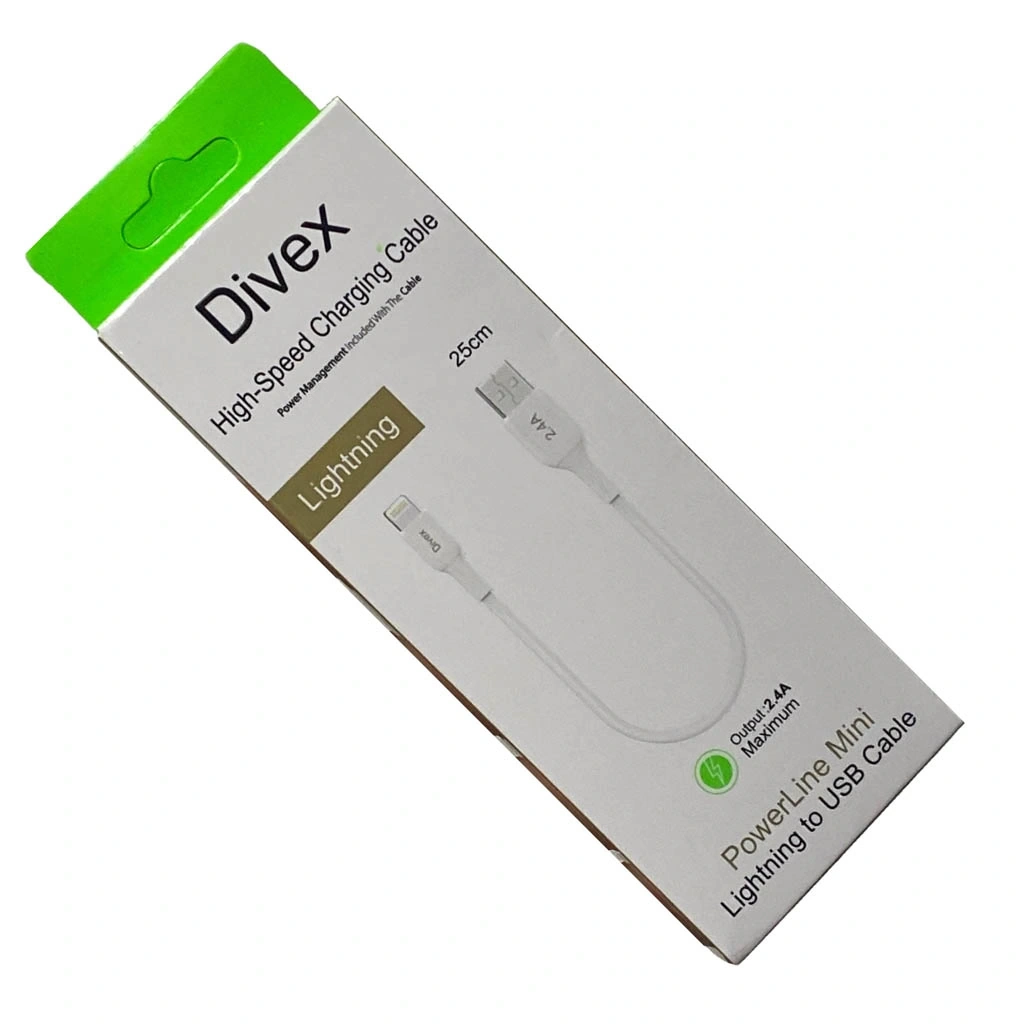 Divex 24A Lightning to USB Hızlı Şarj Kablosu, kompakt 25cm boyutu ile Apple cihazlarınız için ideal bir şarj çözümüdür. Kısa ve pratik tasarımıyla powerbank kullanımı ve seyahatler için mükemmel bir tercihtir.