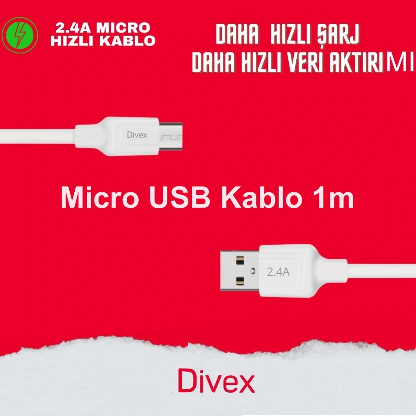 Divex 24A Micro USB Hızlı Şarj ve Data Kablosu 1m DC-100